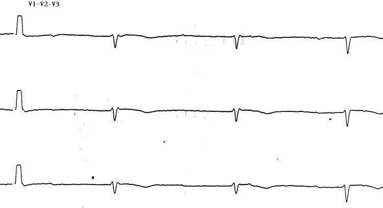 Ersatzrhythmus (wahrscheinlich His-Bündel-Rhythmus)