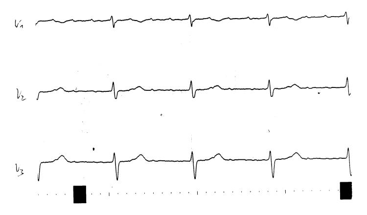 (am ehesten Vorhoftachykardie) mit 3:1-Überleitung