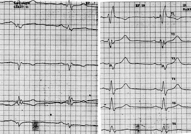 tiefem, breiten S in I, II und M-förmiger Deformierung in V1-V3