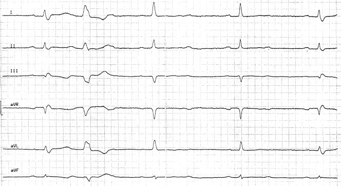 Der Rhythmusstreifen (Abl. I, 10mm/s) verdeutlicht das Geschehen noch einmal: