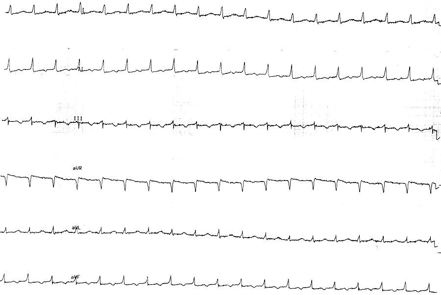 PQ 0,13s QRS 0,07s QT 0,22s(?) (QTc