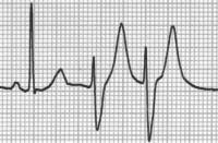 - Frequenz typischerweise bei 180/min (120 und 250/min)d) His-Bündel-Rhythmus/-Extrasystole