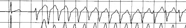- gleichförmige (biphasische Undulationen), regelmäßige Kammerkomplexe ohne erkennbare Anfangs- und Nachschwankung