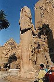Großen Einfluß auf die Architektur hatte - wie überall in Ägypten - Ramses II, der hier rechts in Form einer Granit-Kolossalstatue verewigt ist. |