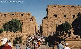 am Westufer des Nils passiert man die zwei Memnon-Kolosse (Abb. links: