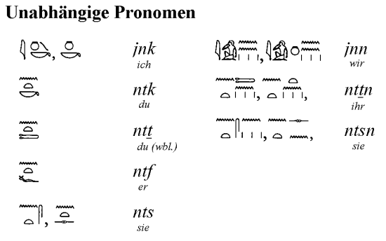 Bei den Pronomen haben sich die alten Ägypter richtig ins Zeug gelegt. Man unterscheidet drei verschiedene Typen.
