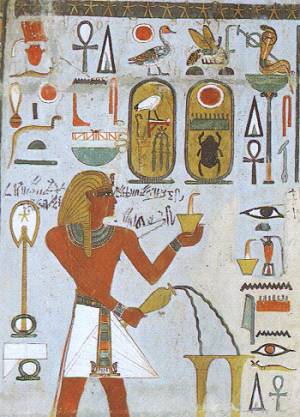 Übersetzung (von rechts nach links): "Uräus, Herrin, sie möge geben Leben, Gesundheit und Wohlstand, König von Ober- und Unterägypten, Mencheperre, Sohn des Ra, Thutmosis, dem Leben, Gesundheit und alle Freude gegeben sei von ihm, wie Ra, für immer" |